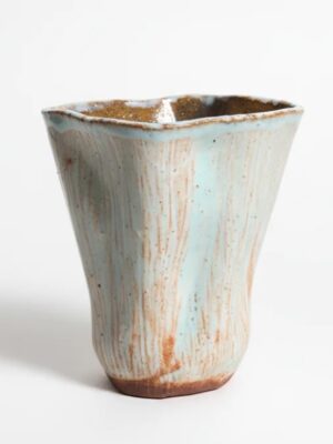 Jarrón de cerámica hecho a mano y cocido a alta temperatura. Está modelado mediante una técnica manual de golpes suaves desde el interior y el exterior, que hace que el barro se abra y genere una textura orgánica y viva, como si la propia materia respirase hacia fuera. La superficie muestra un diálogo natural entre esmaltes artesanos en tonos crudos y tierras, con salpicaduras y matices que refuerzan su carácter único. Su forma redondeada y su boca ligeramente abierta lo convierten en un jarroncito delicado, ideal para flores, una ramita o simplemente como objeto escultórico. Cada pieza es irrepetible, resultado del gesto, el ritmo y el fuego.