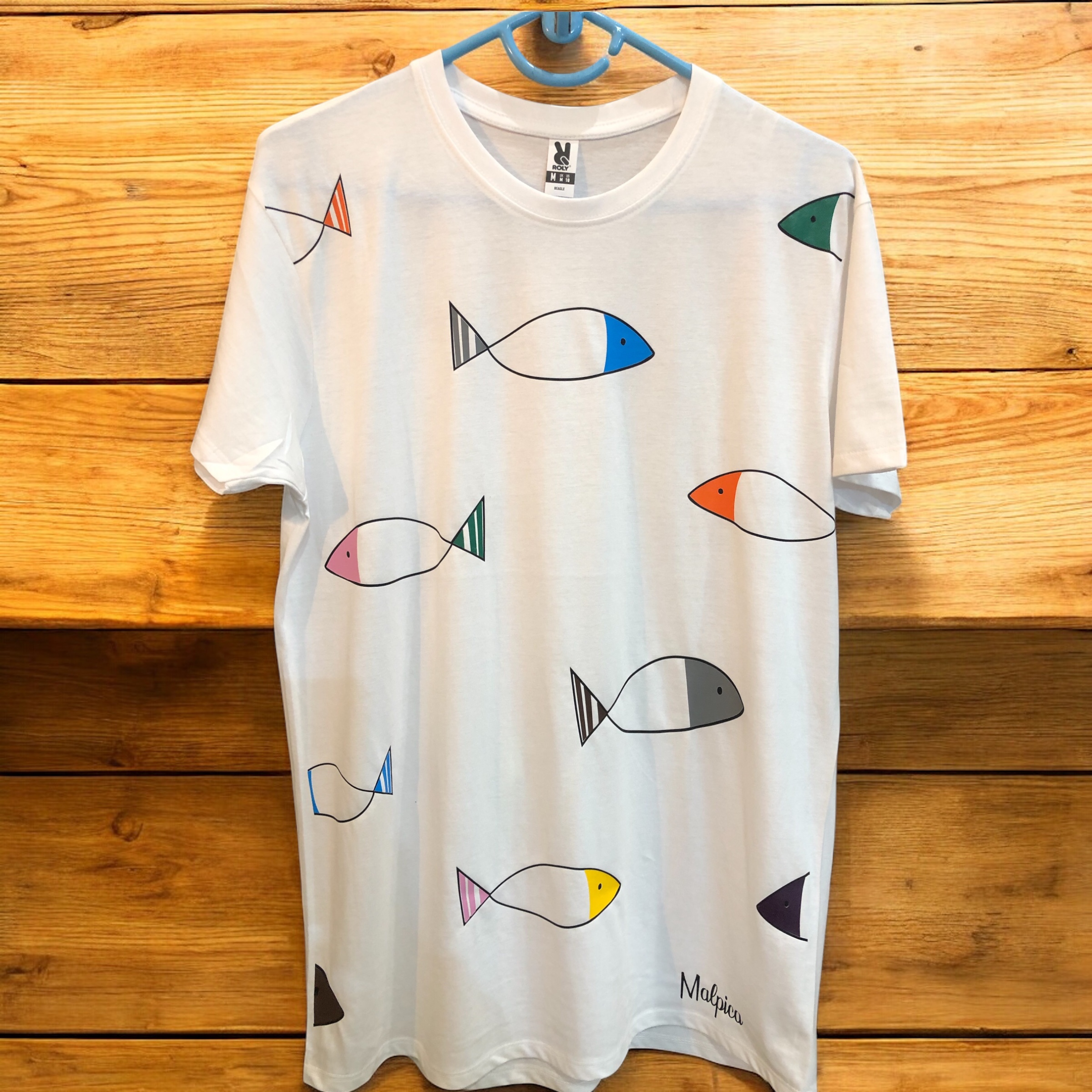 «Os Peixiños de Creare » es una camiseta de algodón 100% con un diseño original inspirado en el mar de A Costa da Morte. Peces dibujados a mano e impresos de forma artesanal en una prenda cómoda y con identidad propia.