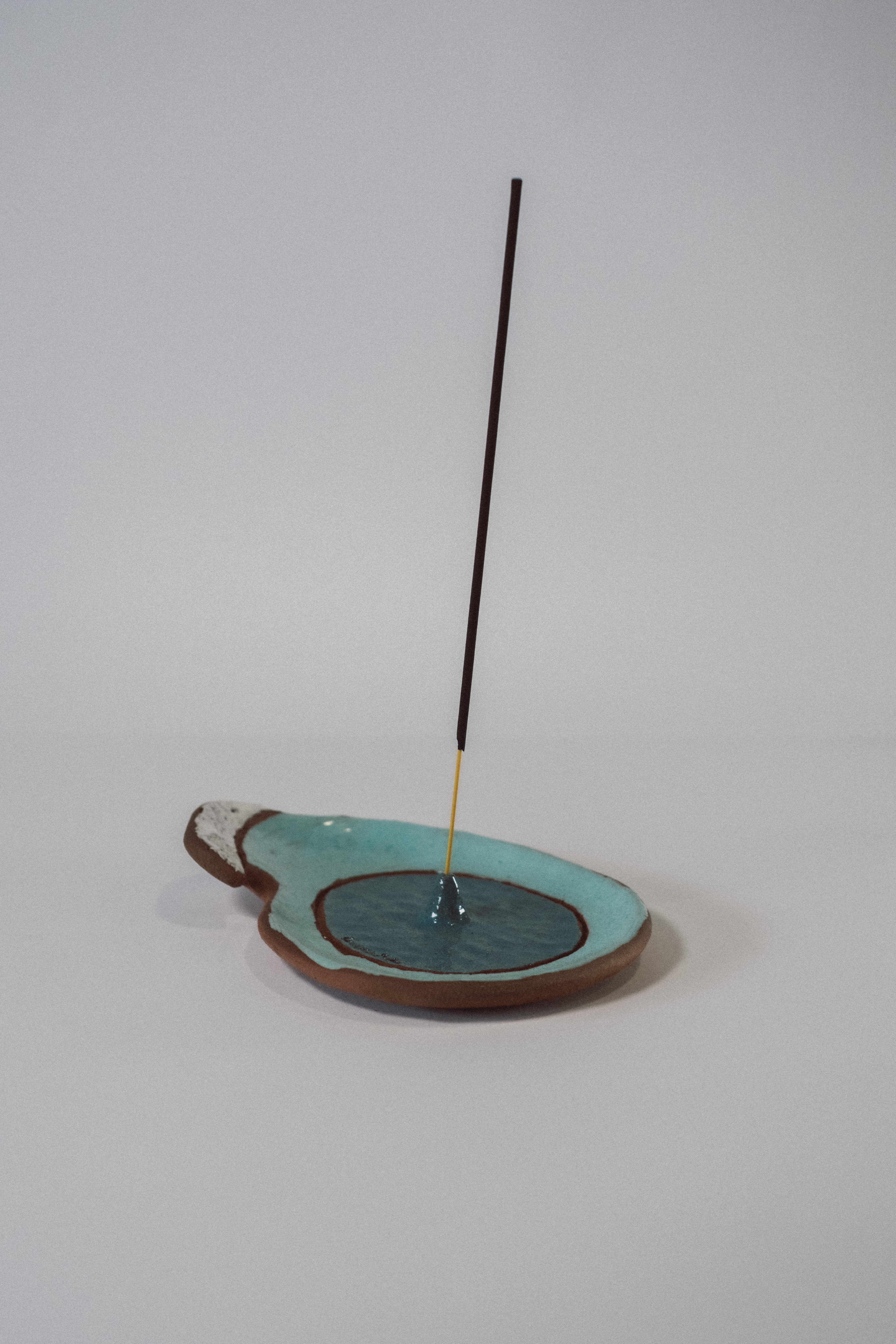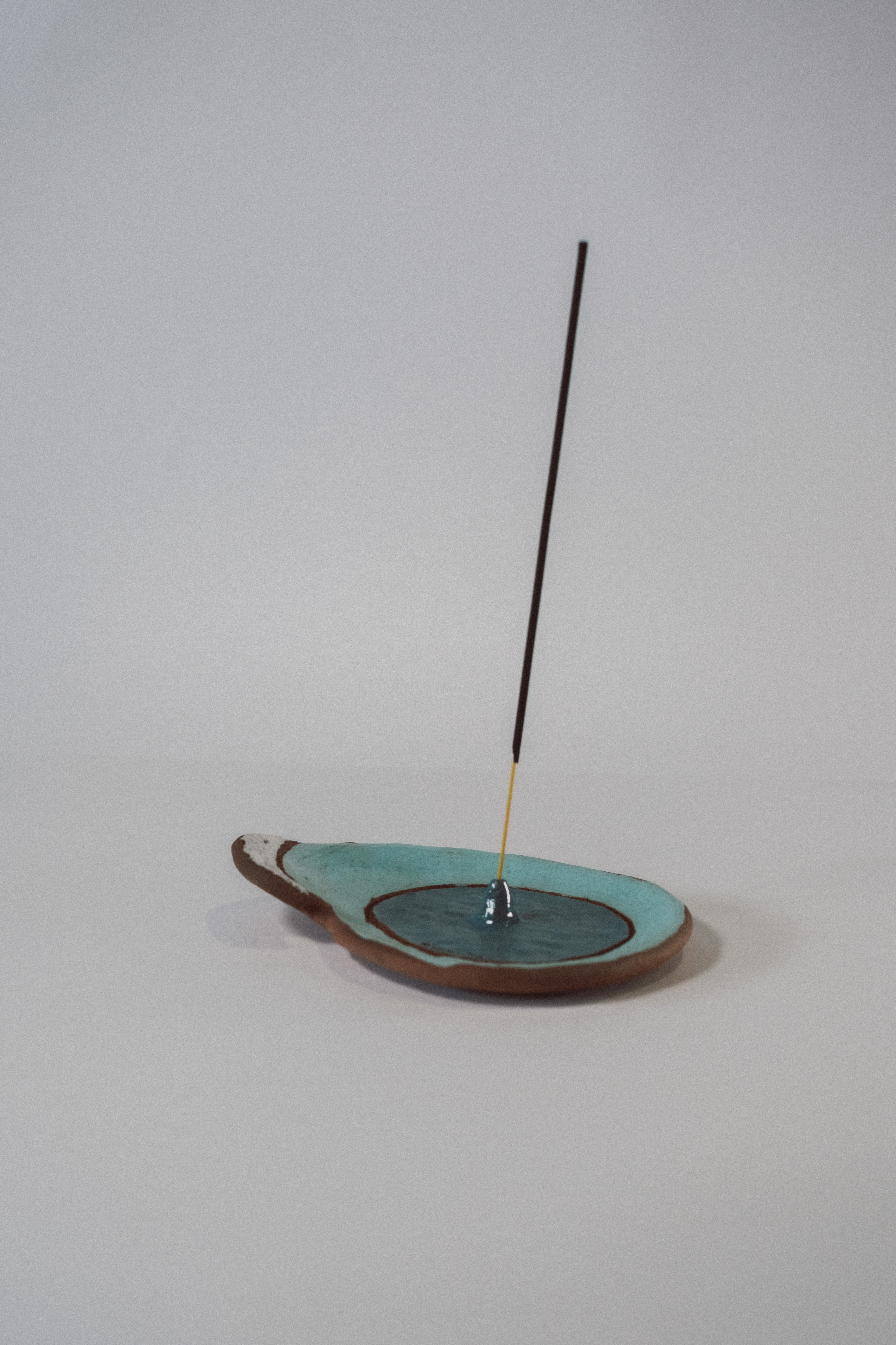 Ola es un incensario artesanal modelado a mano, con una forma fluida que evoca el movimiento natural del mar. Está esmaltado a pincel con esmaltes artesanales, creando matices únicos en cada pieza. Pensado para varillas de incienso, recoge la ceniza de forma natural y funciona también como objeto decorativo cuando no está en uso.
