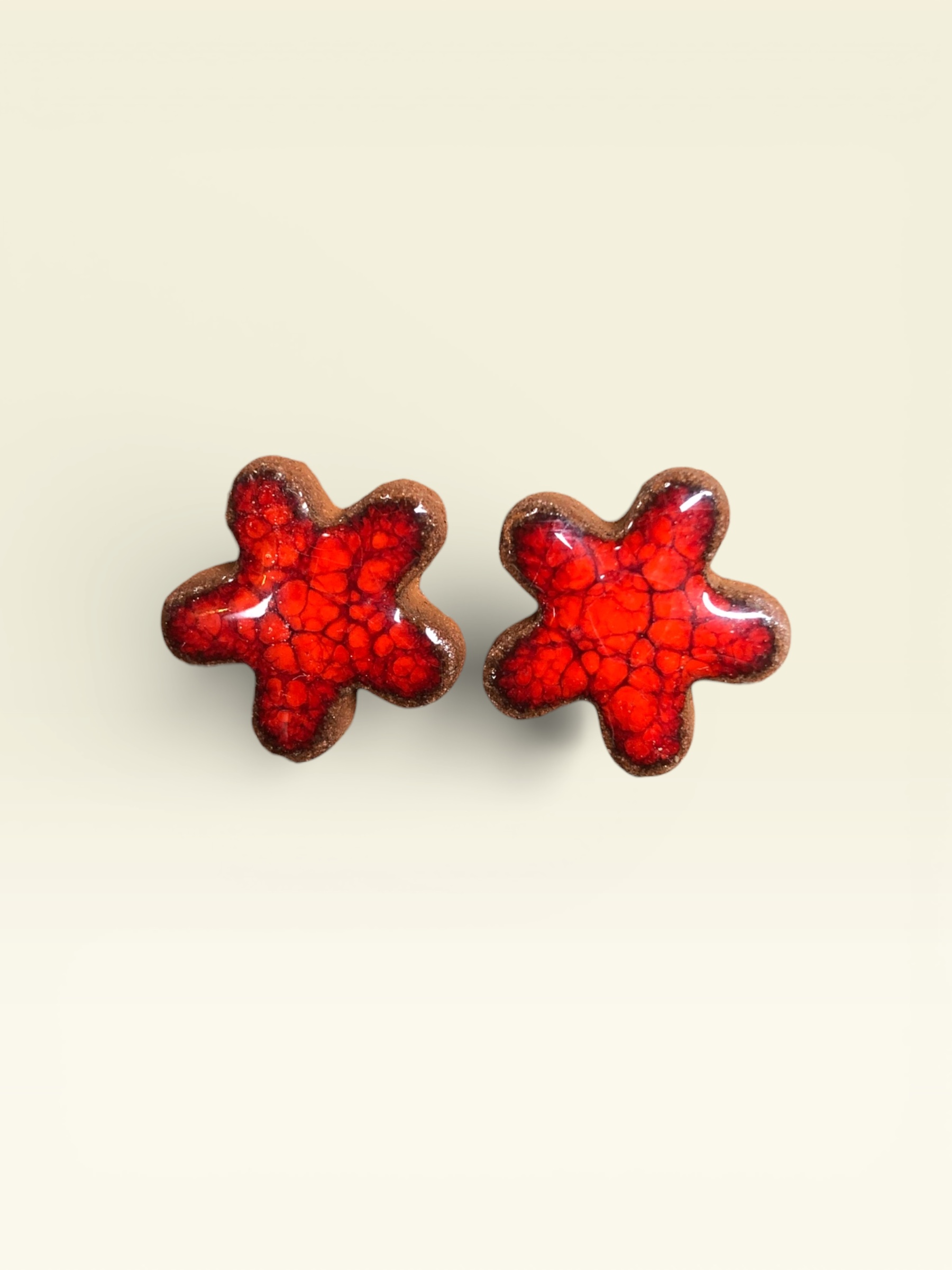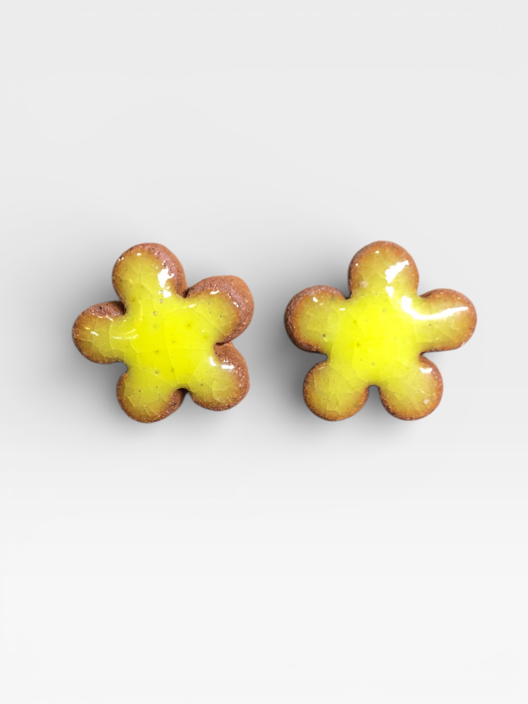 Pendientes pequeños de botón elaborados artesanalmente en cerámica, modelados y esmaltados a mano. Con un tamaño de 1,5 cm, son ligeros, cómodos y muy favorecedores, ideales para el uso diario. Su forma floral y sus colores vivos aportan un toque de luz y frescura a cualquier estilo. Las piezas metálicas están realizadas en acero hipoalergénico, apto para pieles sensibles, garantizando comodidad durante todo el día. Cada par es único, ya que al estar hechos a mano pueden presentar ligeras variaciones que los convierten en una pieza artesanal exclusiva.