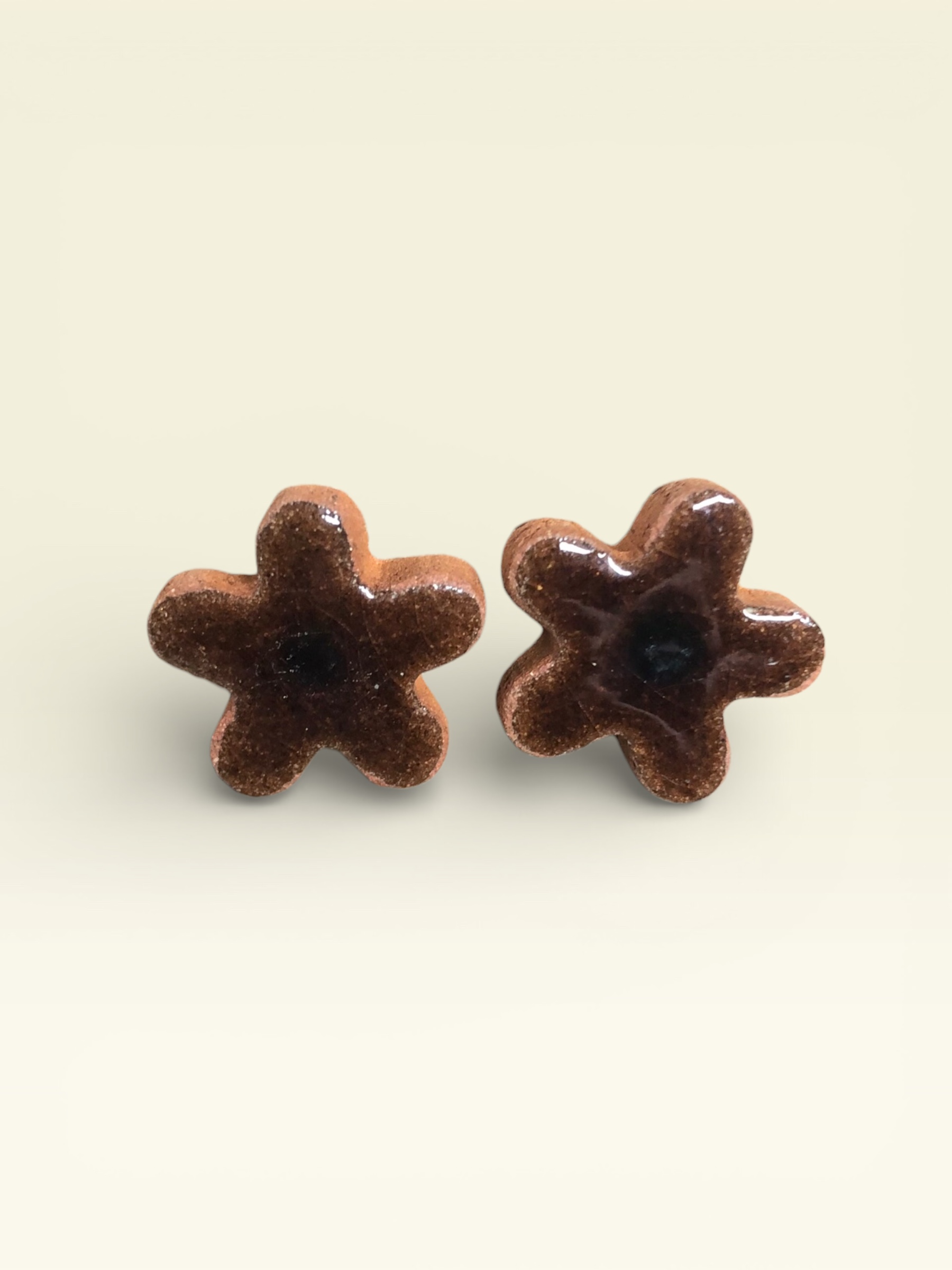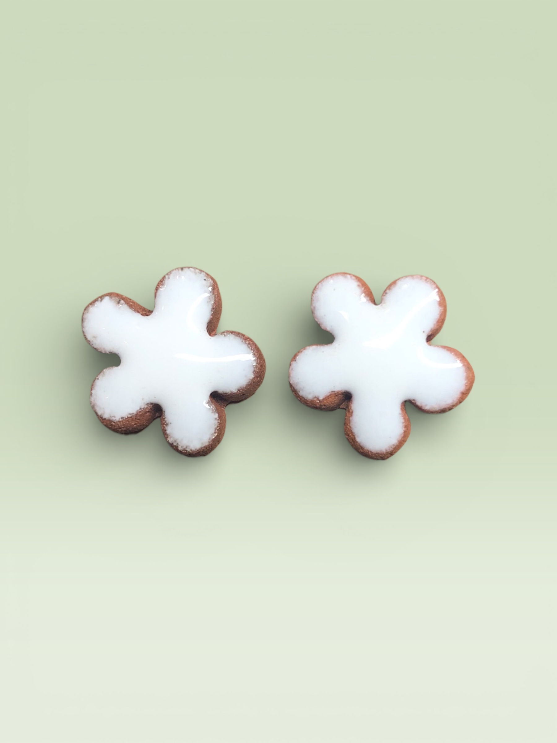 Pendientes pequeños de botón elaborados artesanalmente en cerámica, modelados y esmaltados a mano.