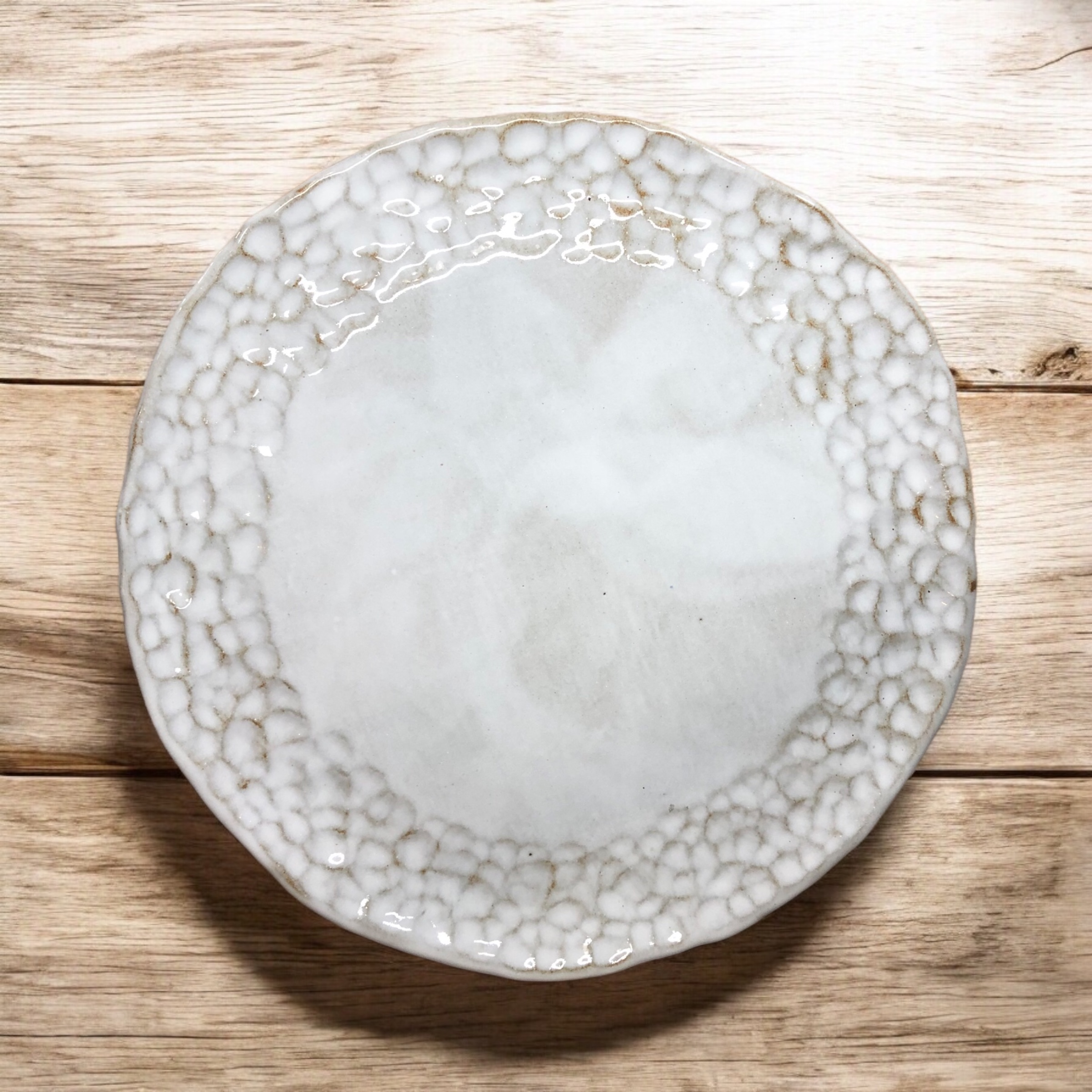 Plato llano de cerámica artesanal (25 cm) «ESPUMA DE MAR». Colección Atlántica
